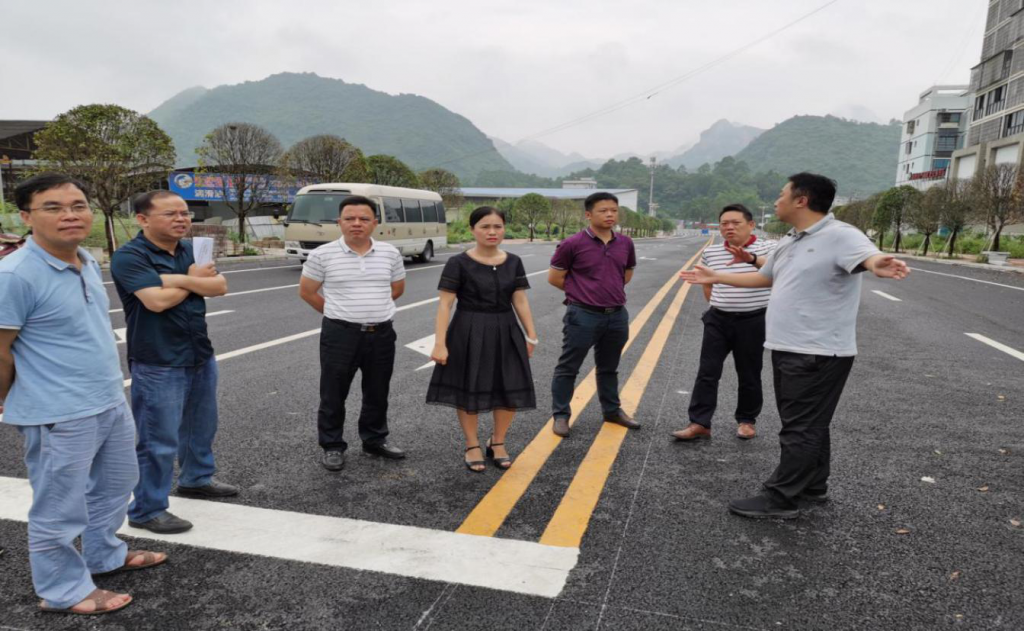 (图为韦朝晖(左四)在农贸路项目现场调研)